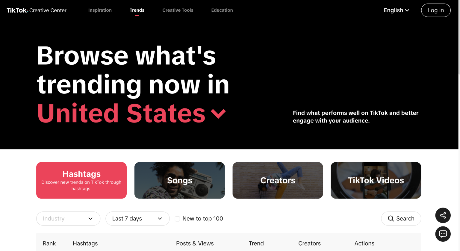 TikTok 的创意中心是一个强大的工具,可以帮助你发现当前流行的标签和趋势。通过浏览热门标签,你可以找到与自己的内容相关的热门话题,从而增加视频的曝光率。