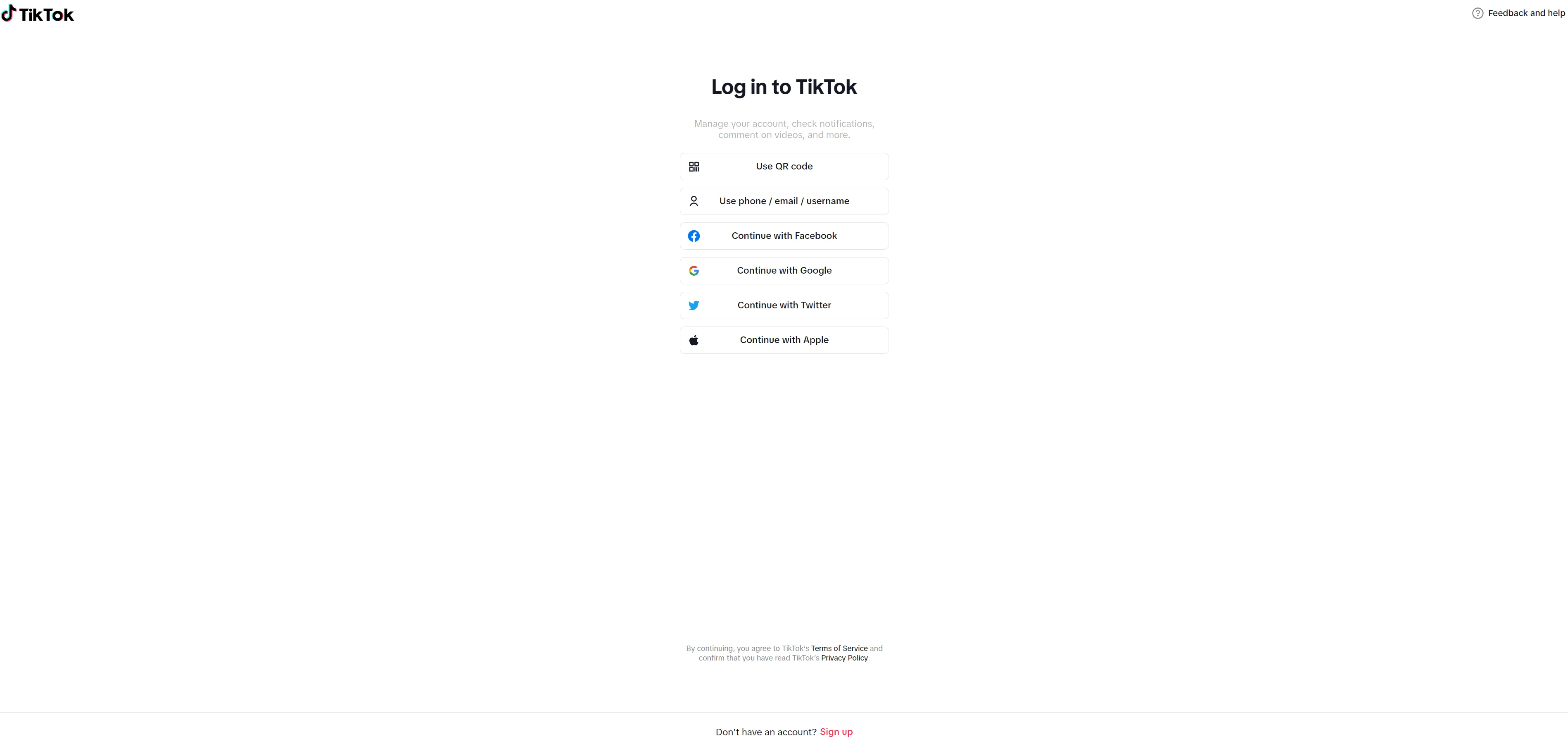 在注册页面,第一个选择是使用您的 TikTok 帐户。可以选择 “Use QR code(使用二维码)“并按照说明操作,也可以使用与 TikTok 账户关联的 phone/email/username(电话/电子邮件/用户名)登录。
