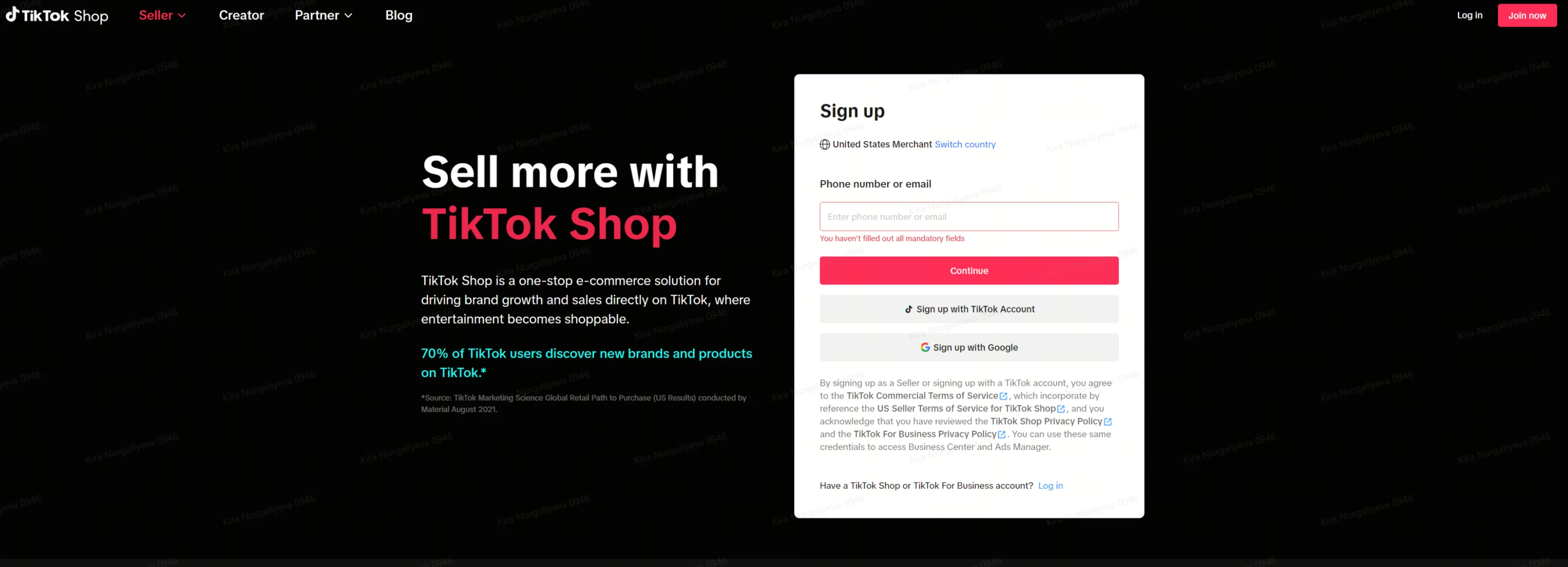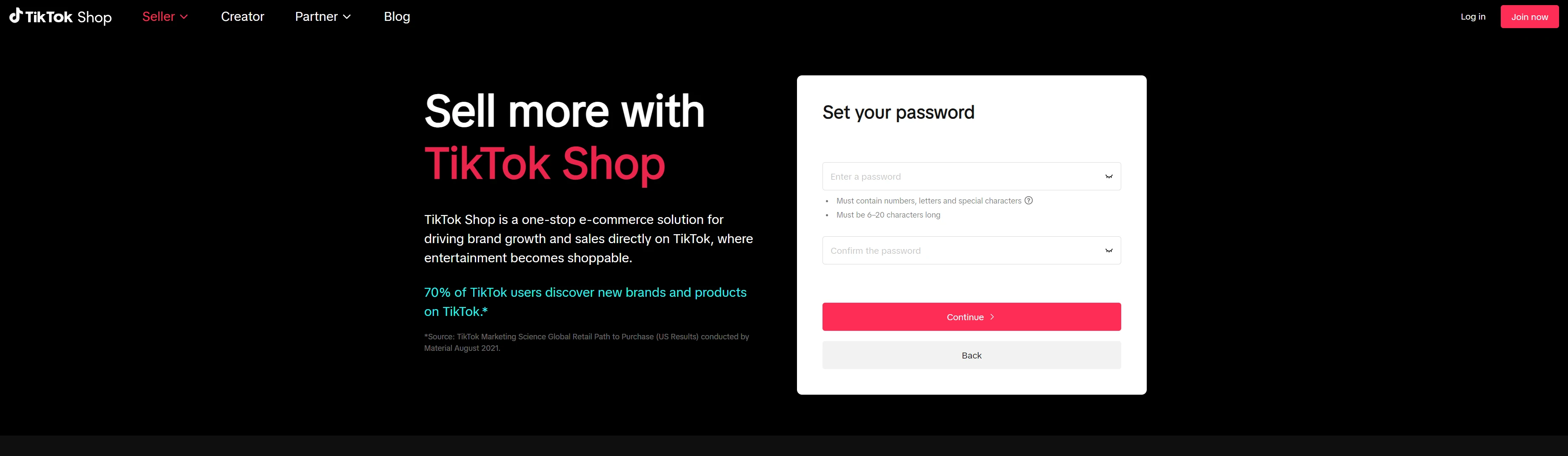 如果出现 “Account already exists(账户已存在 )”的错误信息,则表示您输入的电话号码或电子邮件地址已注册为 TikTok Shop 账户或 TikTok for Business(广告平台等)。