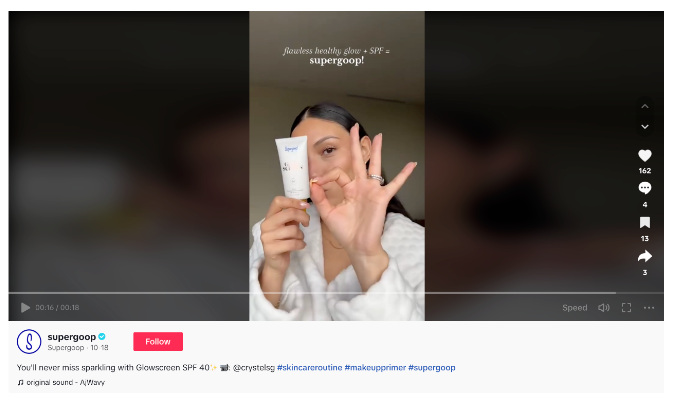 Supergoop通过TikTok网红展示其防晒产品的日常使用效果,显著增加了产品销售。网红的真实体验和推荐帮助品牌赢得了用户的信任和喜爱。