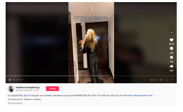 Lulus通过与时尚网红合作,推广其最新服装系列。网红在TikTok上展示不同的搭配和造型,提升了品牌的曝光度和销售额。