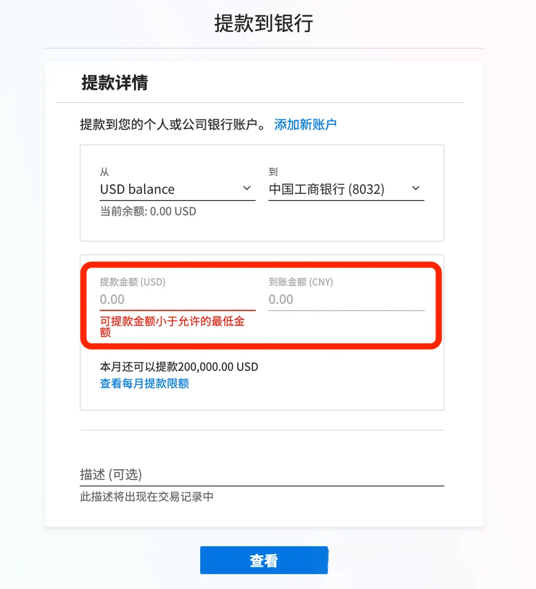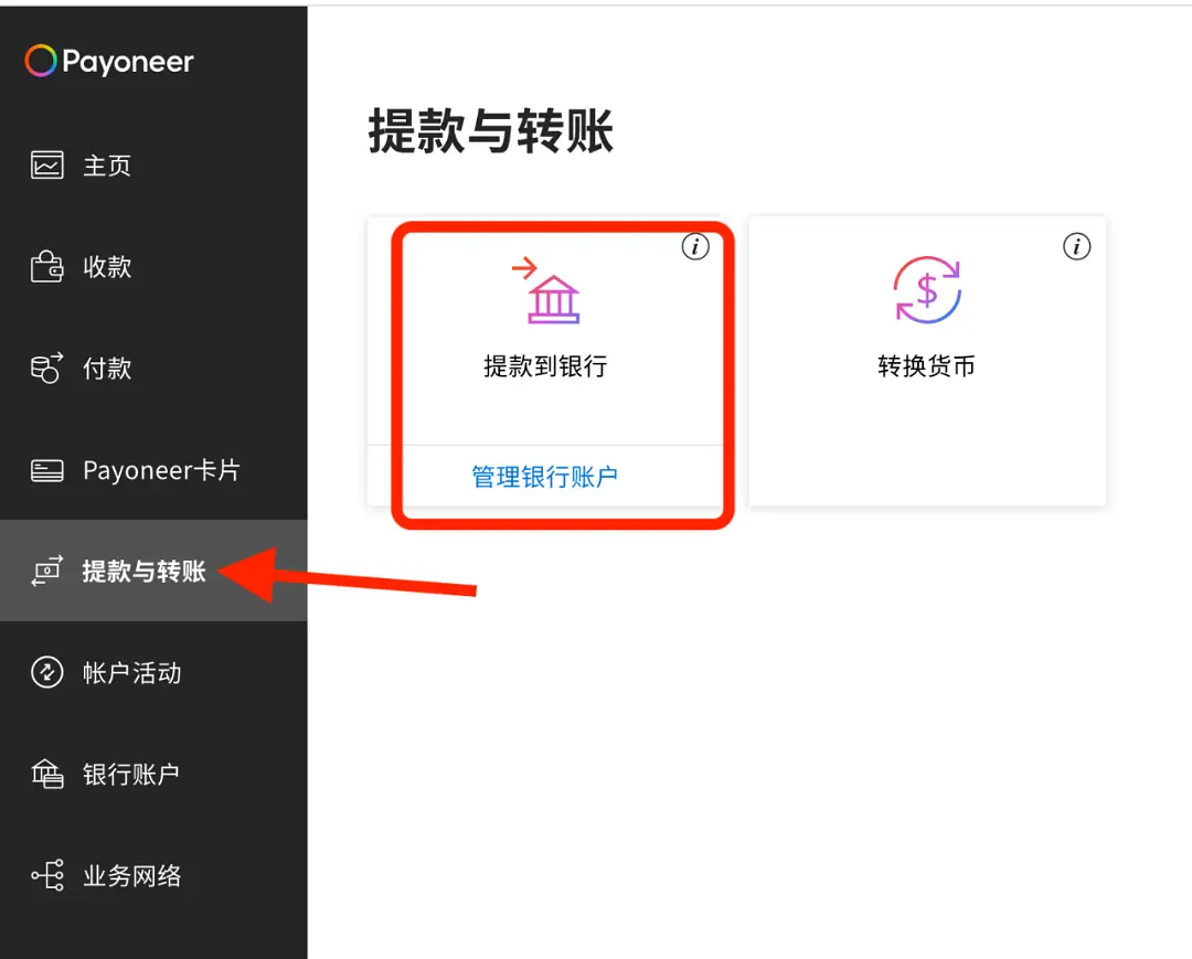 从派安盈提现到国内银行卡:点击左侧“提款与转账”,选择”提款到银行”,输入提款金额,提交即可。刚开始每个月的提款额度是20万美金,随着提款额的增加,额度也会不断提升,也可联系客服申请提额。