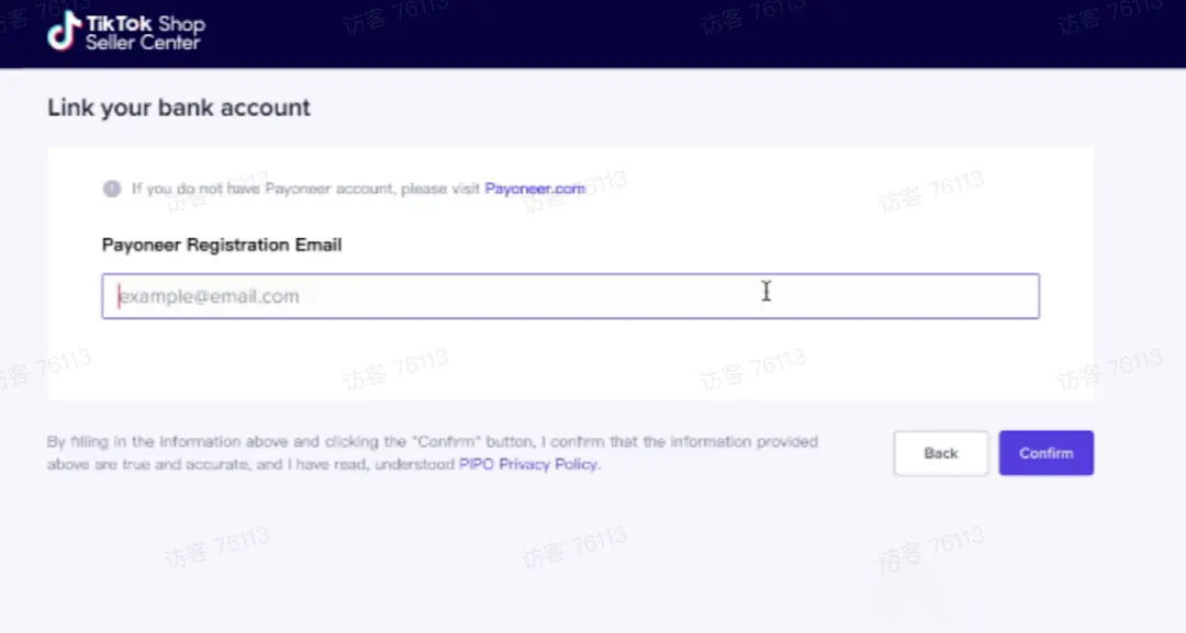 输入Payoneer派安盈的注册邮箱,点击“confirm”完成绑定
