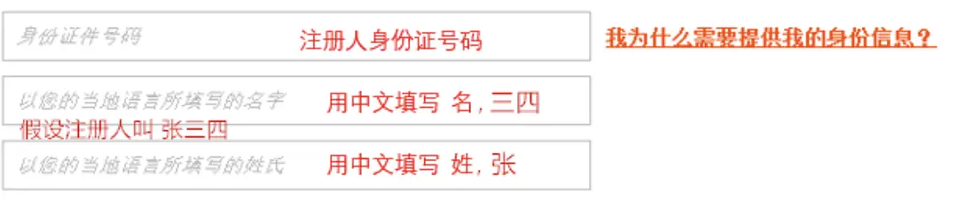有个“以您的当地语言所填写的名字/姓氏”,要用中文填写。